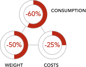 на 50% меньше по весу / соотношение мощности (легче перемещать и устанавливать)